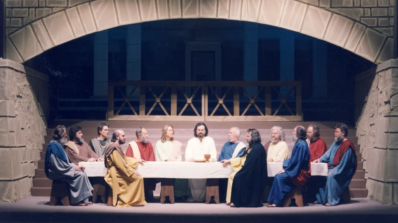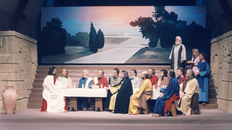 Die Darstellung der Passion des Herrn, die wir auf dieser Bühne gleich beginnen, stellt uns Spieler vor eine große Aufgabe. Wir hoffen, das Erlebnis unsres Spiels löst in euch die Bereitschaft aus, Christus auf dem Weg zu seinem Kreuzestod mit Ernst und Anteilnahme zu begleiten. Erfüllt sich unsre Hoffnung, werdet ihr den Sinn des Dargestellten von seinem Ende her erschließen. Die Auferstehung kann und will den Menschen neues Leben schenken! Freilich ist heutzutage das Passionsgeschehen nicht mehr jedem von uns vertraut. Jerusalem, der Ort, all dem sich Jesu Leid vollzog, liegt weit entfernt von euch und uns. Und die Zeit, in der sich das ereignete, ist zweitausend Jahre vorbei, ist biblische Geschichte.